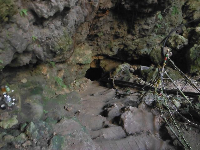 階段の途中にある洞穴。ここも轟の壕の入り口のひとつだろう。