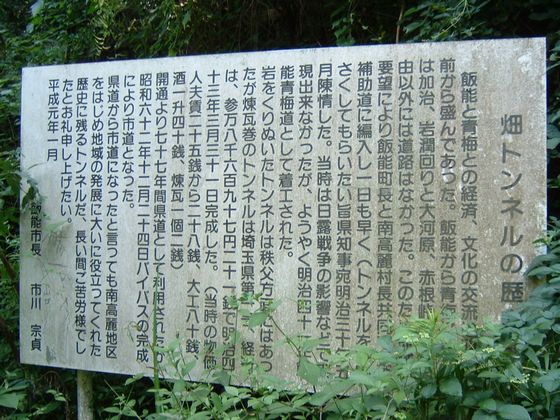 今回は管理人がかつて訪問した、埼玉県飯能市にある廃トンネル、畑トンネルの紹介です。
